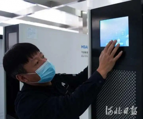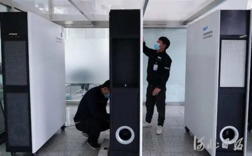 圖為工作人員在調(diào)試氣溶膠吸附消毒滅菌系統(tǒng)設(shè)備。